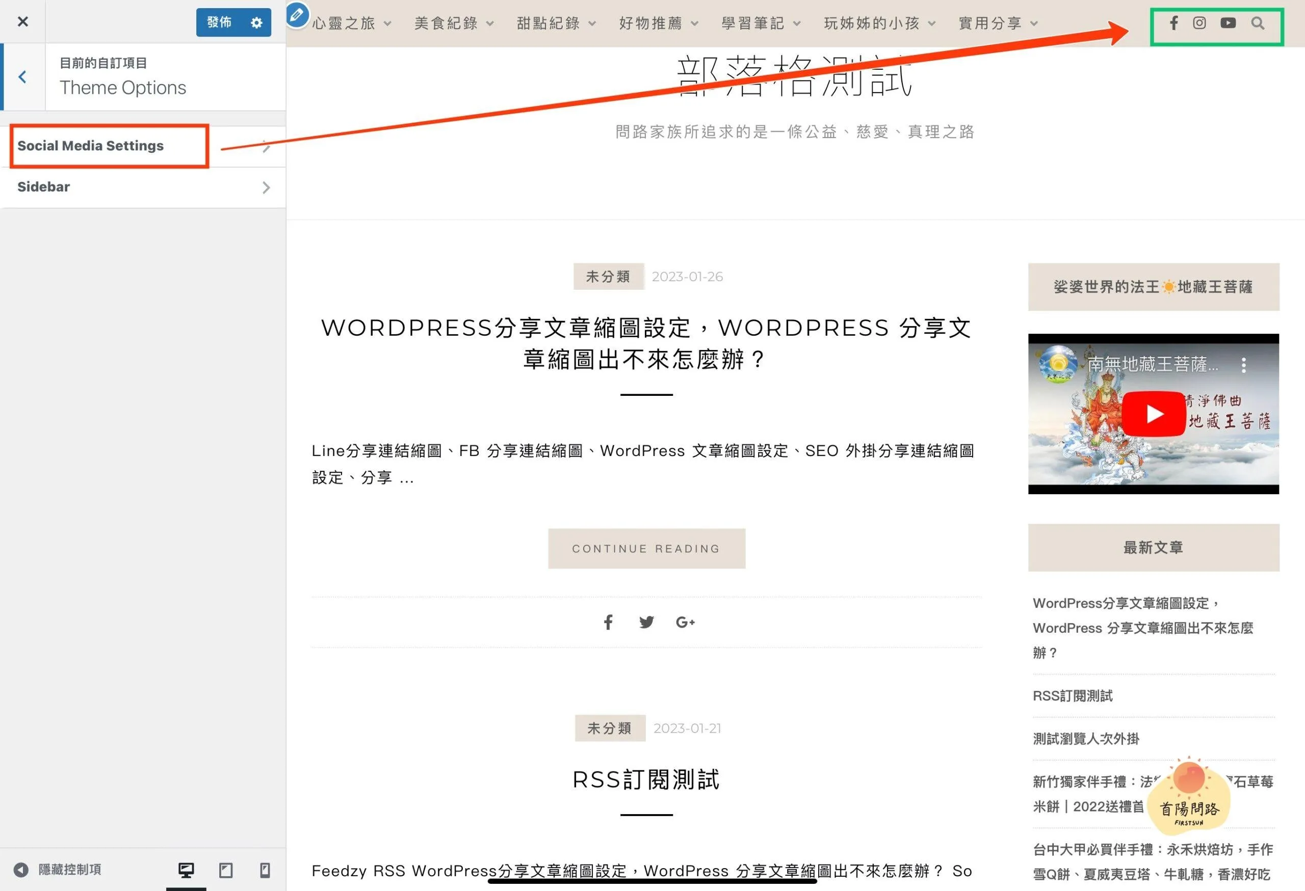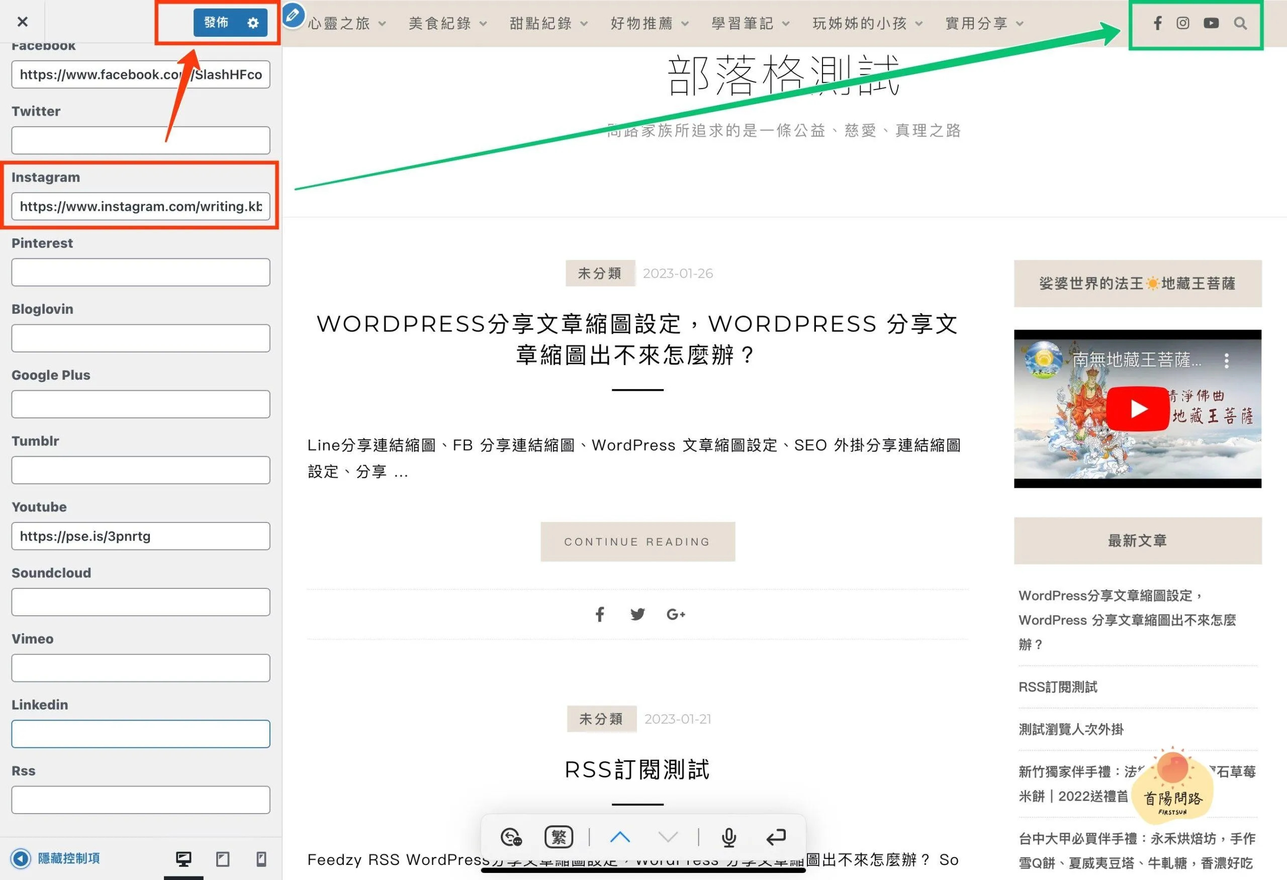 - 怎麼改畫面上的 FB/YouTube 小圖示連結?